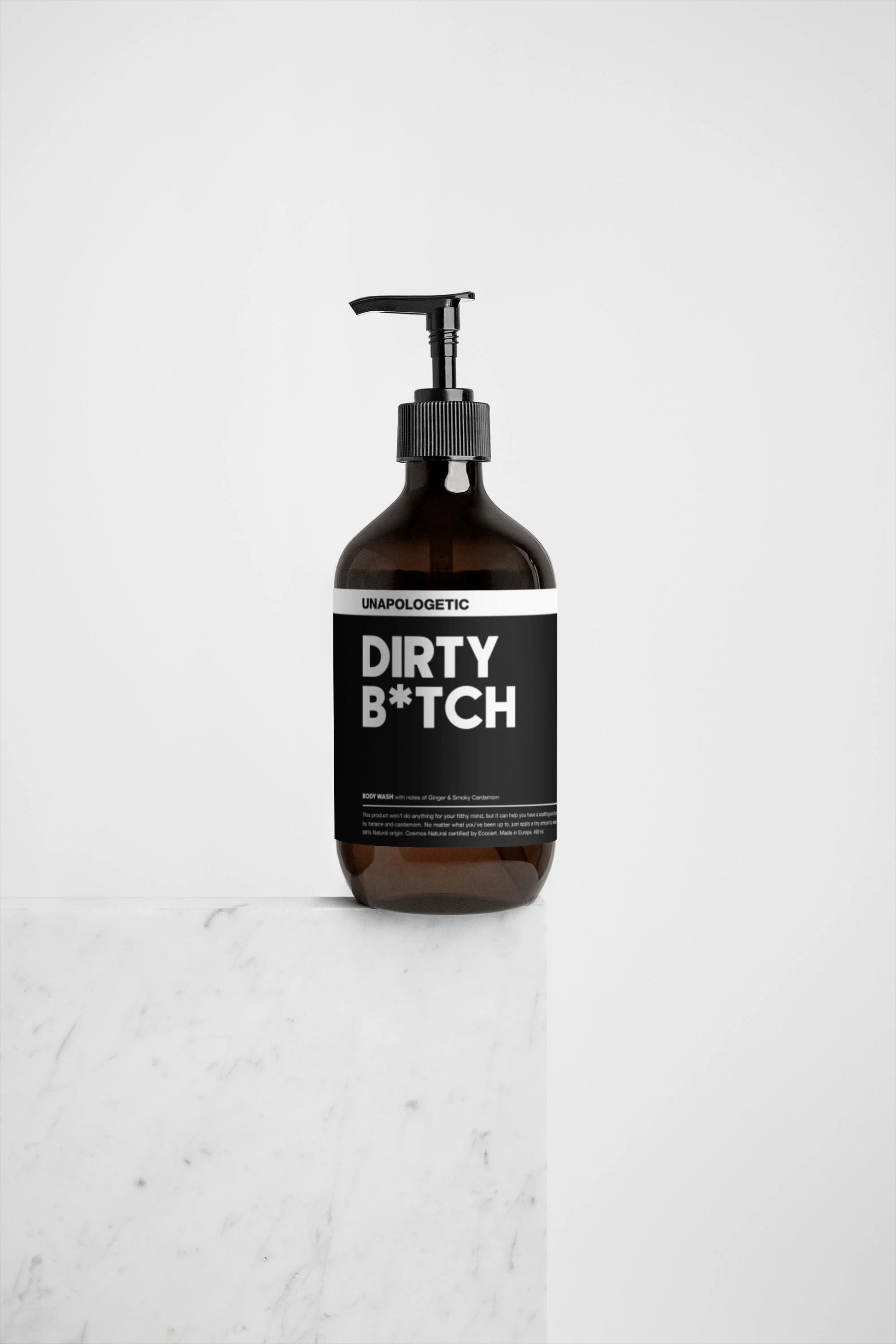 Unapologetic brings you the DIRTY B*TCH Body Wash—the perfect companion for when you've been up to no good. While it can’t clean your filthy mind, this 98% natural body wash will leave you feeling refreshed, hydrated, and oh-so-squeaky clean. Infused with the aromatic warmth of cardamom and the zing of sweet ginger, it's your go-to for a soothing shower experience after a wild day (or night).