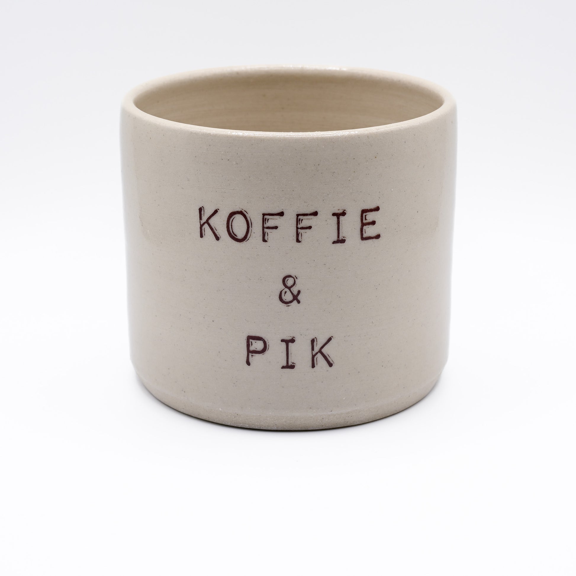 Cheeky design: Features the bold "KOFFIE & PIK" text, a Dutch delight for lovers of caffeine and cock