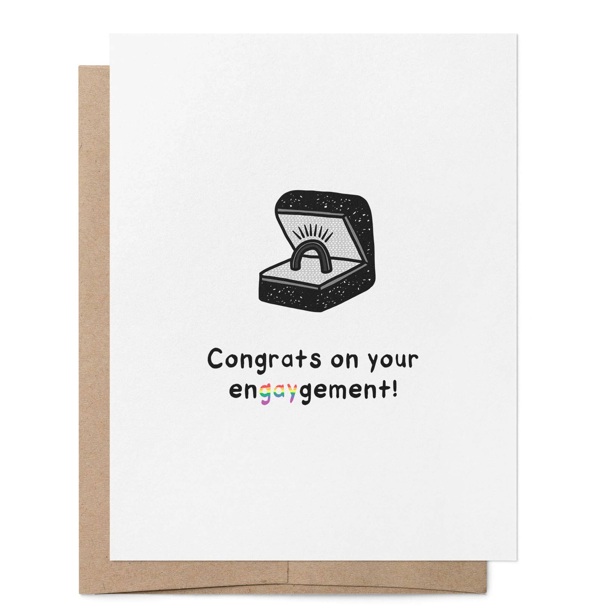 Fun and inclusive design: Features the vibrant phrase "Congratulations on your EnGAYgement," perfect for celebrating LGBTQ+ engagements.