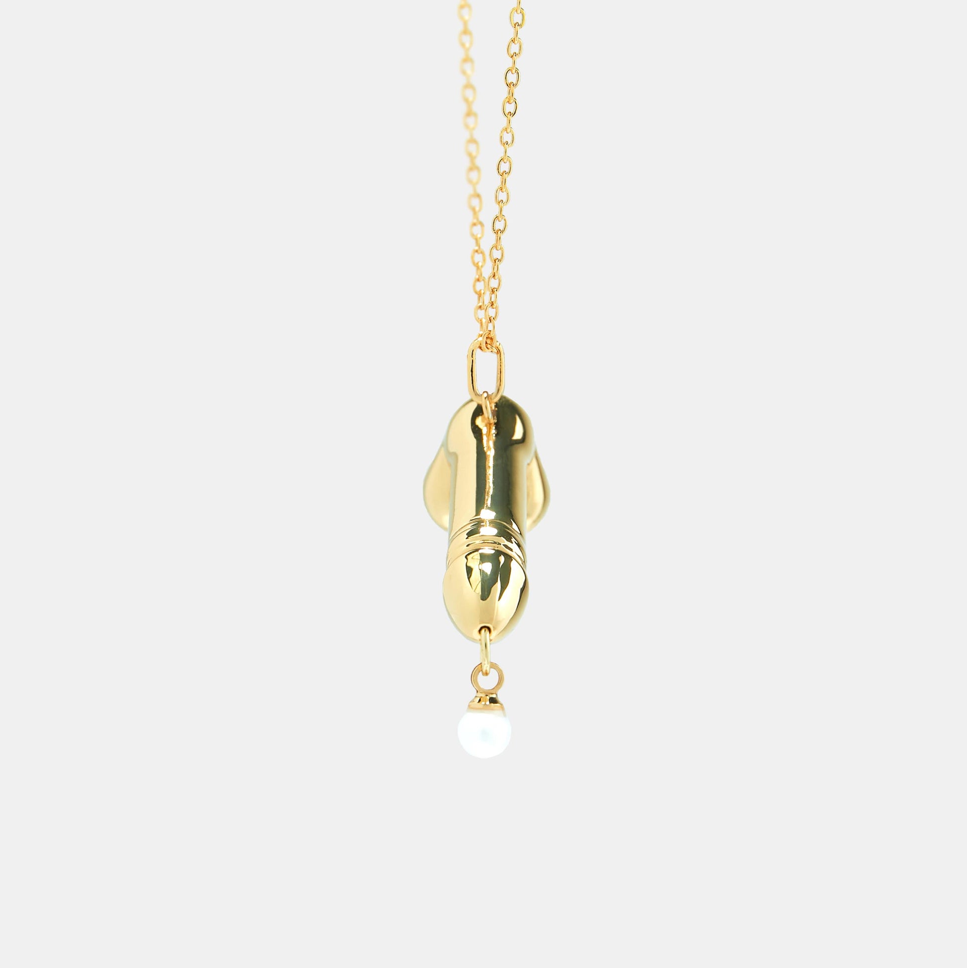 Striking design: Real gold-plated dick pendant paired with a freshwater pearl for a standout look.