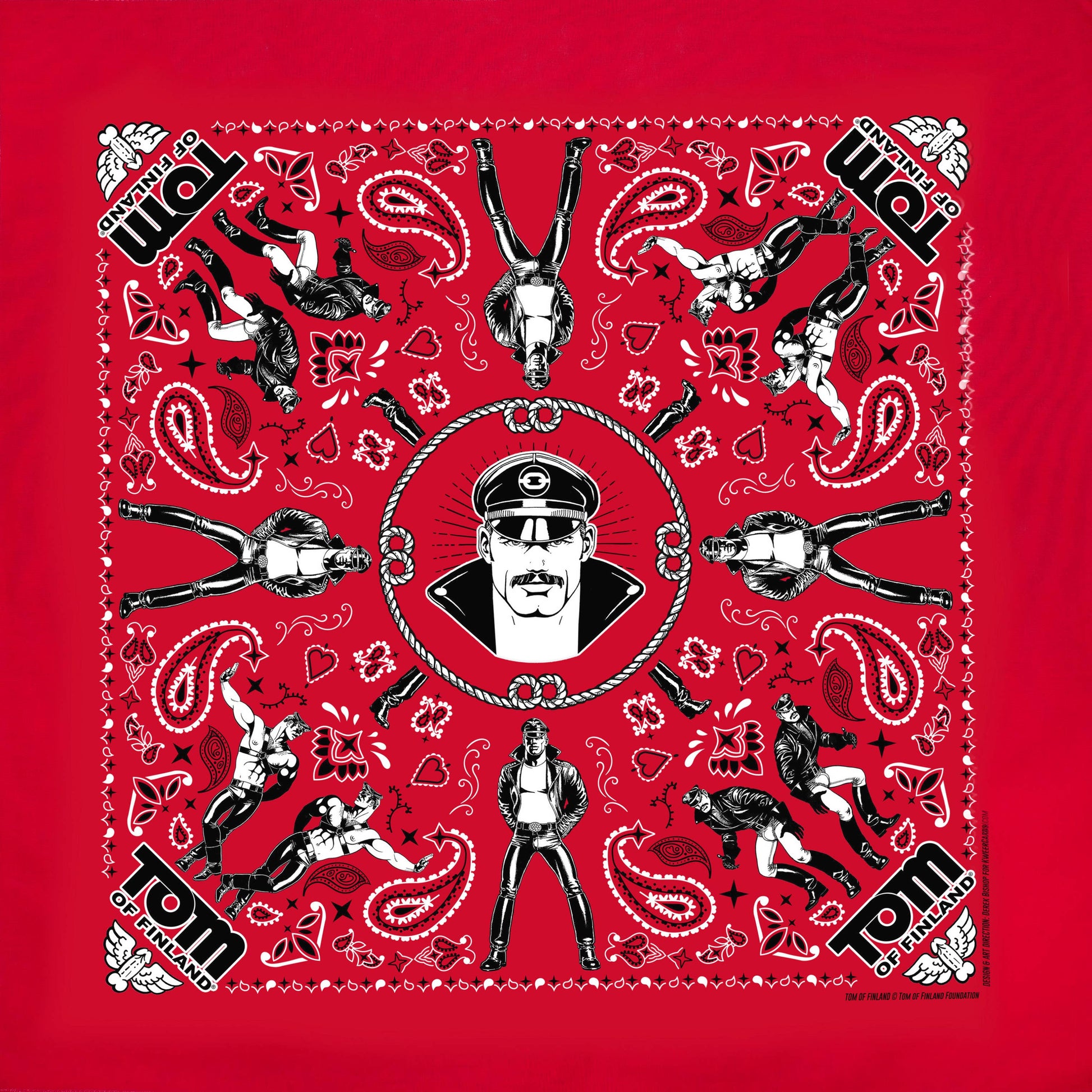 The Tom of Finland Handkerchiefs put a sexy twist on the classic hanky code. These 100% cotton bandanas feature iconic Tom of Finland designs—think leathermen, biker boots, flying penises, and ropes—all mixed with traditional hearts and paisleys. Available in 6 different shades, these hankies look just as good around your neck, wrist, or hanging from your back pocket. They’re not just a fashion statement; they’re a work of art!
